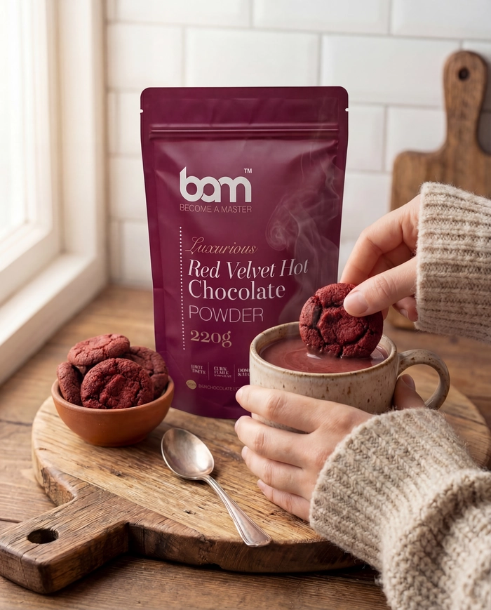 BAM Red Velvet Hot Chocolate je kremasta crvena vruća čokolada s karakterističnim slatkim okusom i baršunastom teksturom. Posebna mješavina stvara vizualno privlačan napitak koji impresionira i bojom i okusom. Idealna jeza uživanje kod kuće ili kao slatki naglasak na posebnim prilikama.