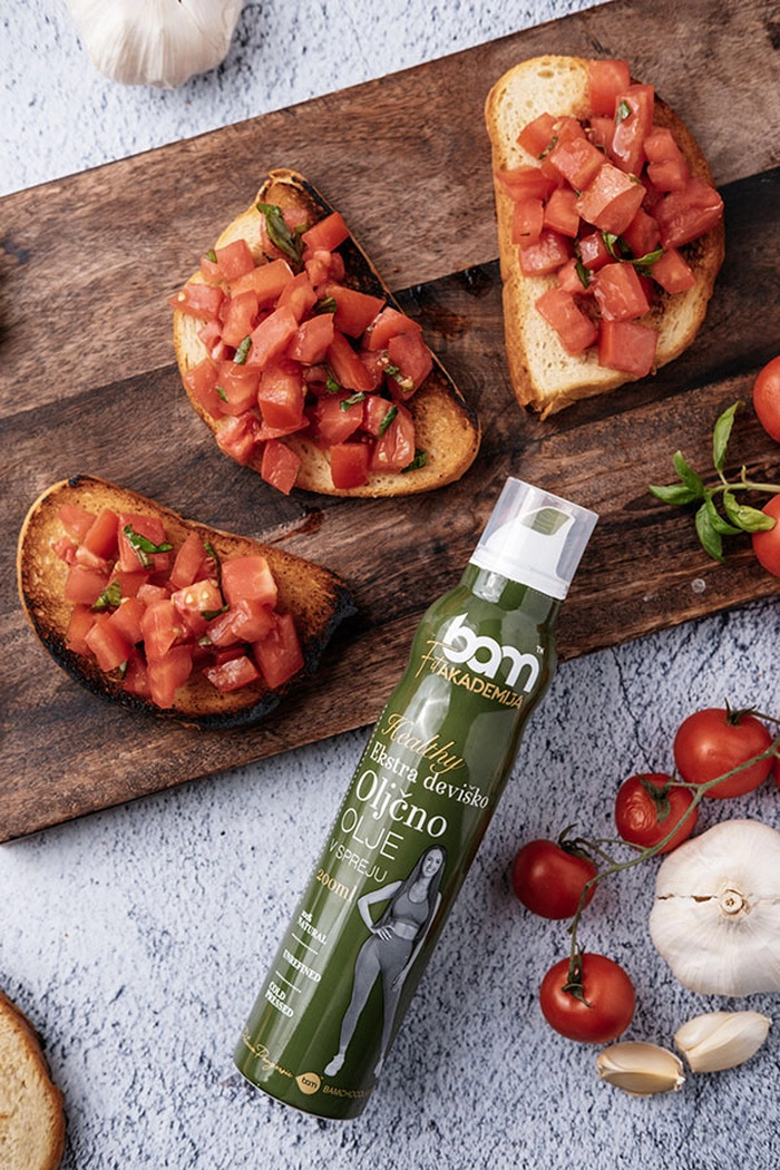 BAM ekstra djevičansko maslinovo ulje u spreju (200 ml) namijenjeno je svim kućnim pekarima i profesionalnim kuharima ili pekarima koji svojim jelima žele dodati završnicu svojim jelima izvrsnim ekstra djevičanskim maslinovim uljem.