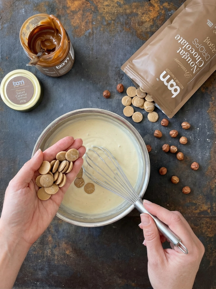 Neka tvoje slastice zablistaju uz jedinstvenu kombinaciju nougata, bijele čokolade i hrskavih lješnjaka. Dodaj kapljice u svoju kuhinju i stvori savršen slatki trenutak! ?✨