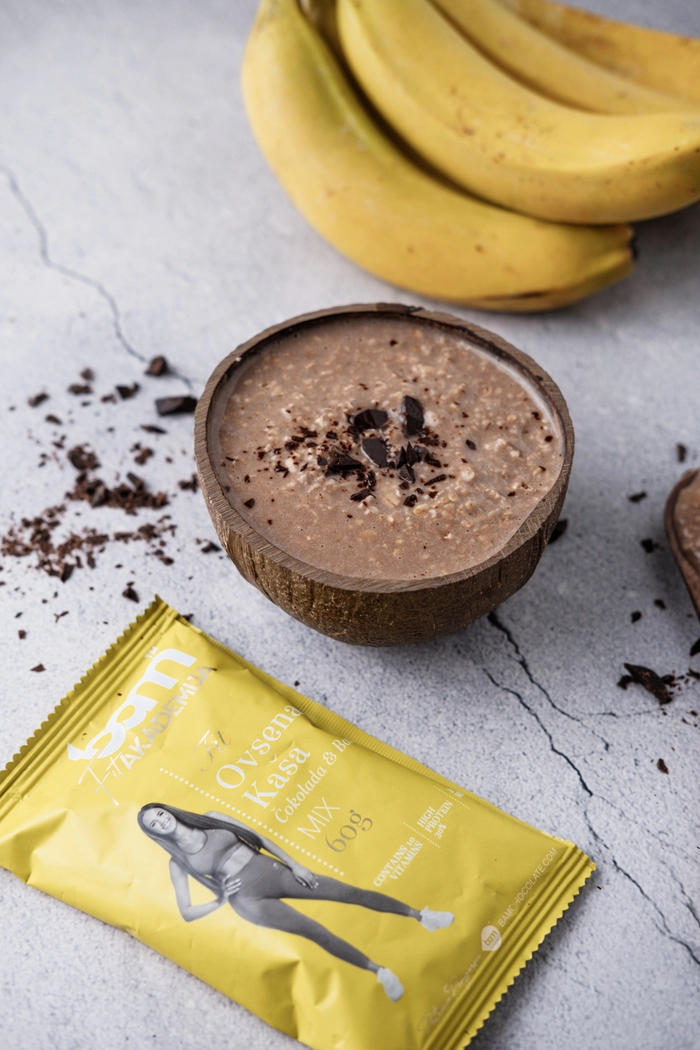 Zobene pahuljice 55%, koncentrat proteina sirutke 28,9%, kukuruzni škrob, modificirani kukuruzni škrob, čokolada 2,5% (zaslađivač: D-maltitol, kakao maslac, kakao masa, niskomasni kakao prah, emulgator suncokretov lecitin, bourbon ekstrakt vanilije), zamrznuti -sušena banana 1%, nemasni kakao prah (10-12%), arome, sol, kompleks vitamina (C, E, B1, B2, B5, B6, B9, B12, niacin, biotin), zaslađivač (sukraloza) . Udio kakaovca najmanje 54%.