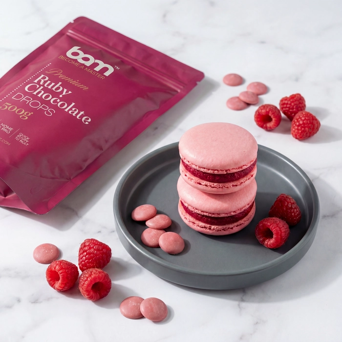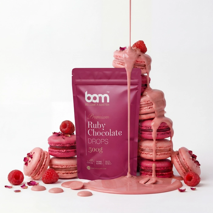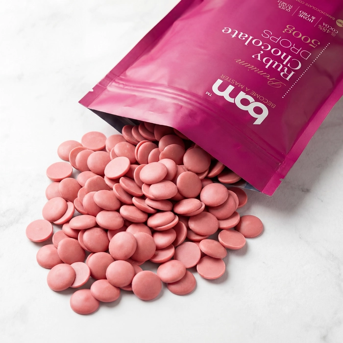 BAM Ruby čokolada (500 g) pruža moderno čokoladno iskustvo s prirodnom ružičastom bojom i prepoznatljivim voćno-kiselkastim okusom. Proizvedena je od posebne vrste kakaovog zrna, bez upotrebe umjetnih aditiva. Pogodna je za sve vrste slastica u kojima želite naglasiti okus i izgled. Proizvod ne sadrži gluten.