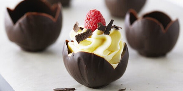 1 Pripremite kist i papirnate posudice. Kist umočite u čokoladu i nanesite debeli sloj čokolade po unutarnjoj strani svake papirnate posudice. Ostavite da se čokolada potpuno ohladi na sobnoj temperaturi.