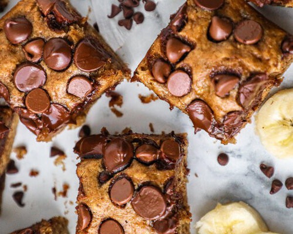 5 Ulijte tijesto u pripremljenu tepsiju za pečenje. U žlicu dodajte žlice maslaca od kikirikija. Nožem za maslac uvaljajte maslac od kikirikija u tijesto za brownie. Pecite 25-30 minuta. Dopustite da se kolačiči s bananom potpuno ohlade, zatim ih narežite.