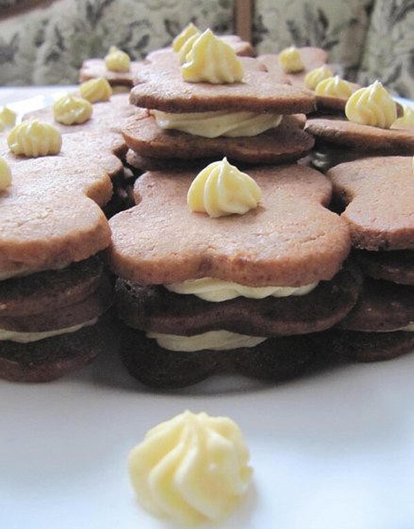 7 Između dva keksa stavite kremu od vanilije i po želji ukrasite.
