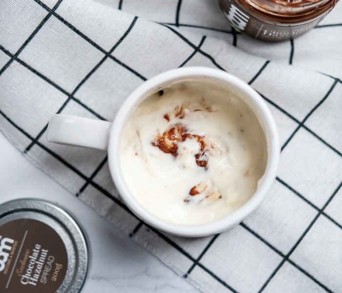 @bamchocolate.com Chocolate-hazelnut roll with BAM hazelnut spread with cocoa in 5 minutes! 🍫 INGREDIENTS: - 4 tablespoons of flour - 1 teaspoon of sugar - 0.5 teaspoons of baking powder - 7 tablespoons of milk (5 tablespoons for the dough and 2 tablespoons for the topping) - BAM hazelnut spread with cocoa - 2 tablespoons of mascarpone cheese - 1 tablespoon of powdered sugar PREPARATION: 1. Step Mix flour, sugar and baking powder in a bowl. Gradually add the milk and knead the dough from all the ingredients. 2. Step When the dough is ready, shape it into an oblong rectangle and spread it with a generous amount of BAM cocoa hazelnut spread. There is never too much of this in preparation. 3. Step Roll the dough into a firm roll and place it in a previously greased cup. 4. Step Place the cup in the microwave and bake for about 50 seconds until the sweet pastry is golden brown. 5. Step Meanwhile, in a small saucepan, mix the soft mascarpone, powdered sugar and a little milk until you get a creamy and smooth mixture. Spread the prepared cream evenly over the top of the baked roll and put the cup back in the microwave for an additional 10 seconds. So simple yet divine. Delicious! 😋 #chocolate #chocolatelovers #bamchocolate #simplereceipe #mugcake ♬ Have My Love - VIP - Shaun Dean & S Dog