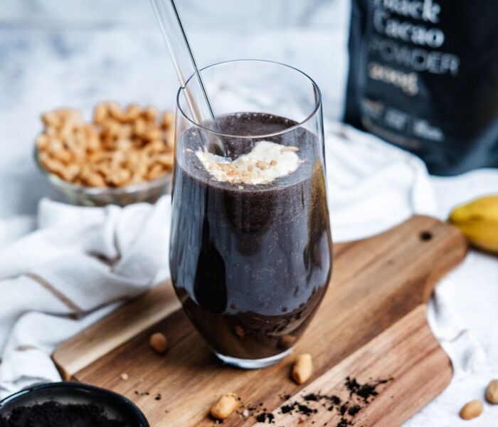 U blender stavite bananu, datulju, maslac od kikirikija, bademovo mlijeko i BAM crni kakao. Sve dobro promiješajte.